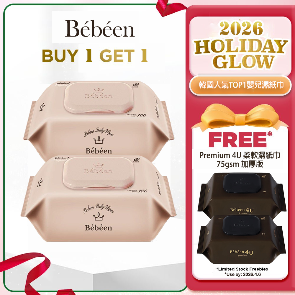 *凡購買1套2包 bebeen 韓國嬰兒 柔軟 濕紙巾 Original plus 55gsm 即送2包 Bebeen Premium 4U 柔軟濕紙巾 -75gsm 加厚版 (70張入) 此日期或之前使用:2026.4.6. 。數量有限,送完即止。