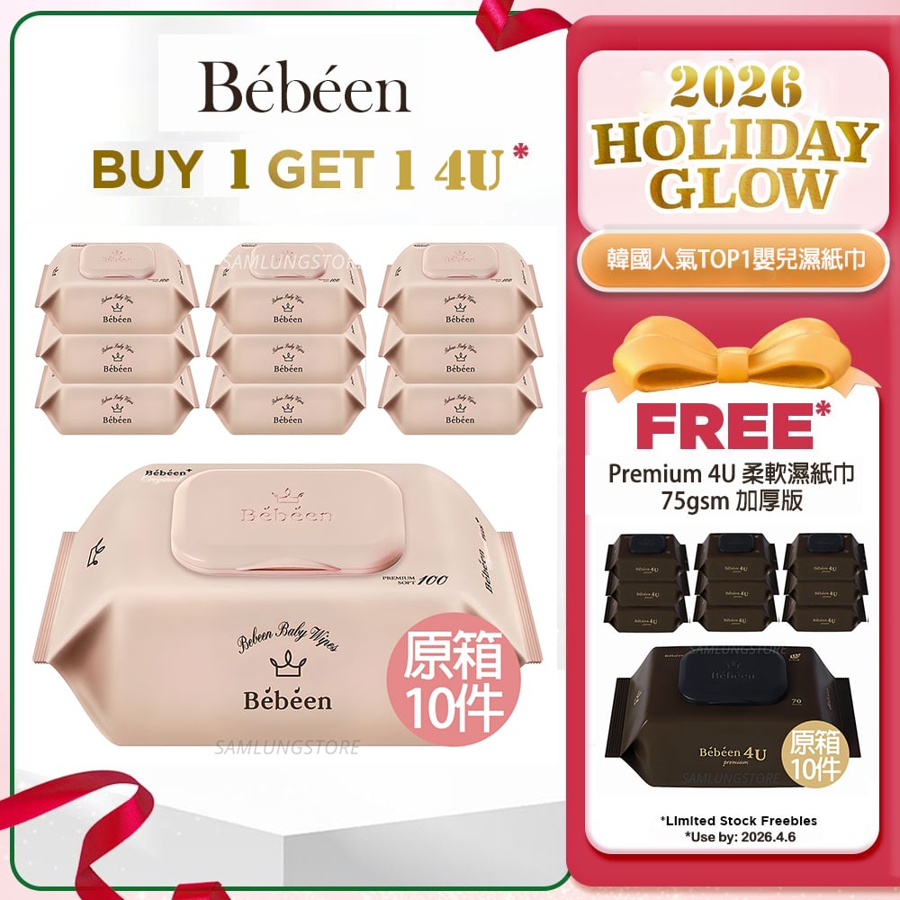 *【買1送1】 凡購買原箱bebeen 韓國嬰兒 柔軟 濕紙巾 Original plus 55gsm 即送原箱 Bebeen Premium 4U 柔軟濕紙巾 -75gsm 加厚版 (70張入) (此日期或之前使用:2026.4.6. )。數量有限,送完即止。