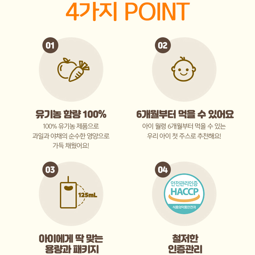100% 有機寶寶果汁! 😋 充滿了來自水果的純營養 😋 一包有蘋果+梨 😋 容量剛剛好,適合兒童吃飯使用 😋 出遊方便攜帶 😋 國內有機加工食品認證 😋 HACCP嚴格安全管理認證 😋 6 個月以上的孩童即可飲用 😋 放心寶寶食用