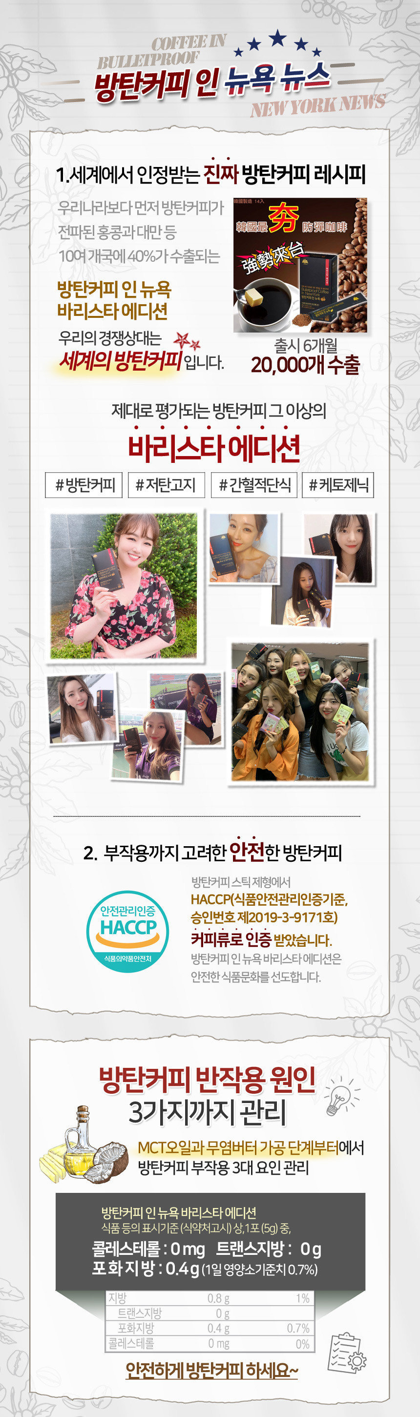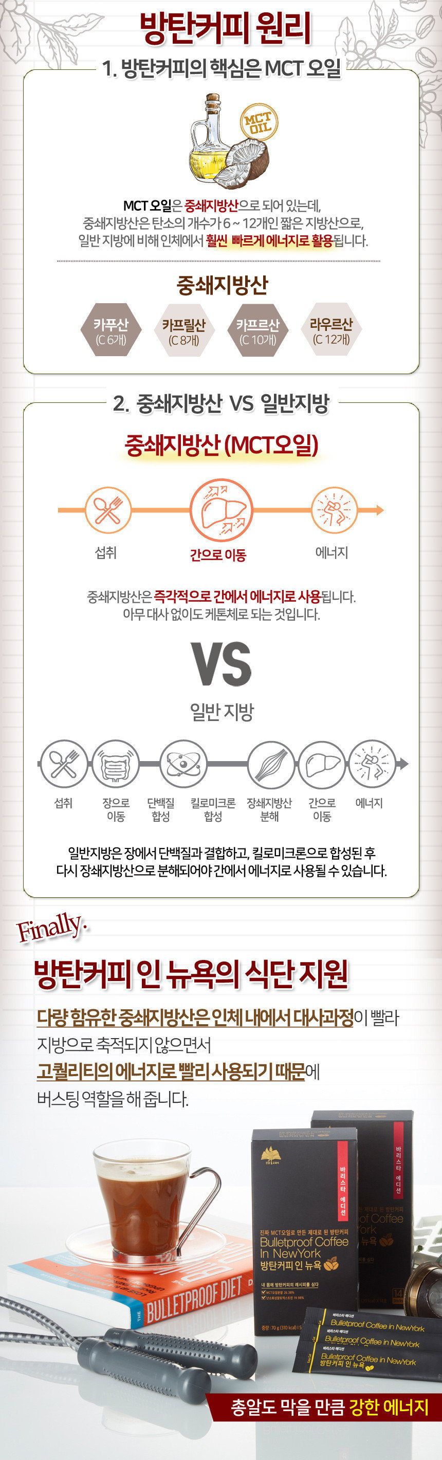 韓國最夯的防彈咖啡強勢登場! 😋經過韓國咖啡師Peter Kim評鑒! 😋好喝順口 😋有飽足感 😋無糖、無鈉配方成分 😋推動身體代謝營養物質 😋減少碳水化合物吸收 為什麼會有瘦身效果呢⁉️ ✅含有99.9%中鏈MCT油 ✅非椰子粉偽裝椰子油 ✅成分原料少於5種 ✅不含鈉,不含乳化劑 ✅MCT就是防彈咖啡中主要消耗熱量減脂的來源 ✅生酮飲食都可以喝一杯 搭配飲食方法: ✅早餐1杯防彈咖啡,隔5~6小時再吃下一餐 午餐與晚餐也要是低醣高蛋白喔 ✅透過低碳水,讓身體消耗囤積的脂肪,短時間內達到很不錯的減脂效果 泡法: 熱泡:1包+100~120ml的熱水 冷泡:1包+50ml溫水/冷水+3~4塊冰塊 (可自由調節水量,但切記不要加糖❗❗) 🔴以下人士不適合飲用🔴 ⚠️腸胃差 ⚠️有脂肪肝,痛風,心臟疾病,膽結石患者 ⚠️高尿酸,高血脂,尤其是高三酸甘油酯 ⚠️曾罹患過急性胰臟炎