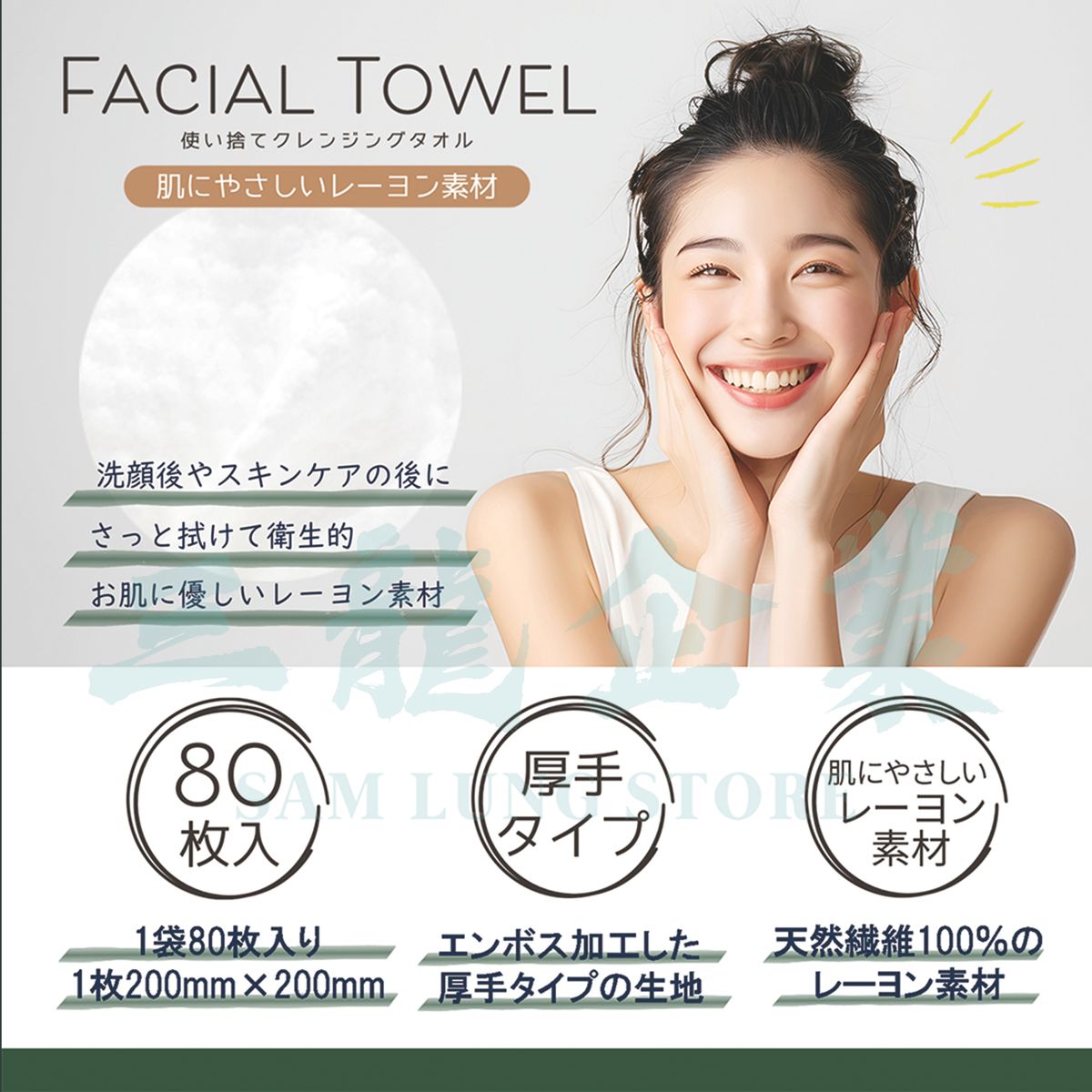 產地:中國 ✅光滑柔軟親膚 ✅特製壓紋有助提高清潔效果 ✅使用頂級天然植物纖維製成 ✅擁有蠶絲般觸感 ✅加厚設計 ✅吸水性強 ✅耐用不起毛粒 ✅乾濕兩用亦可 ⭐適合潔面/身、卸妝、嬰兒護理、日常家居清潔等 不同用途 ⭐廠商生產的一次性洗面巾(ISDG Nanoni、藥王堂) 供應日本超過4000家藥妝店,質素有保證